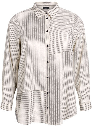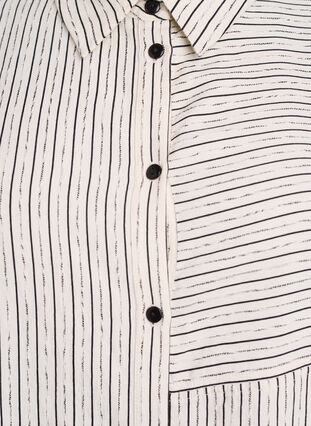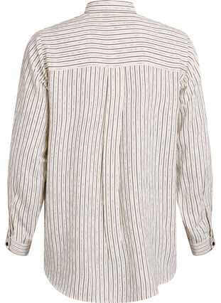 Chemise en tissu léger et doux, composée de 70 % de viscose LIVAECO™ et ornée d'un subtil motif à rayures variées, où des lignes irrégulières sont tissées pour créer une texture intéressante. Ce modèle présente une coupe droite avec un col de chemise classique, une fermeture boutonnée sur le devant et des manches longues avec poignets pour une allure soignée.