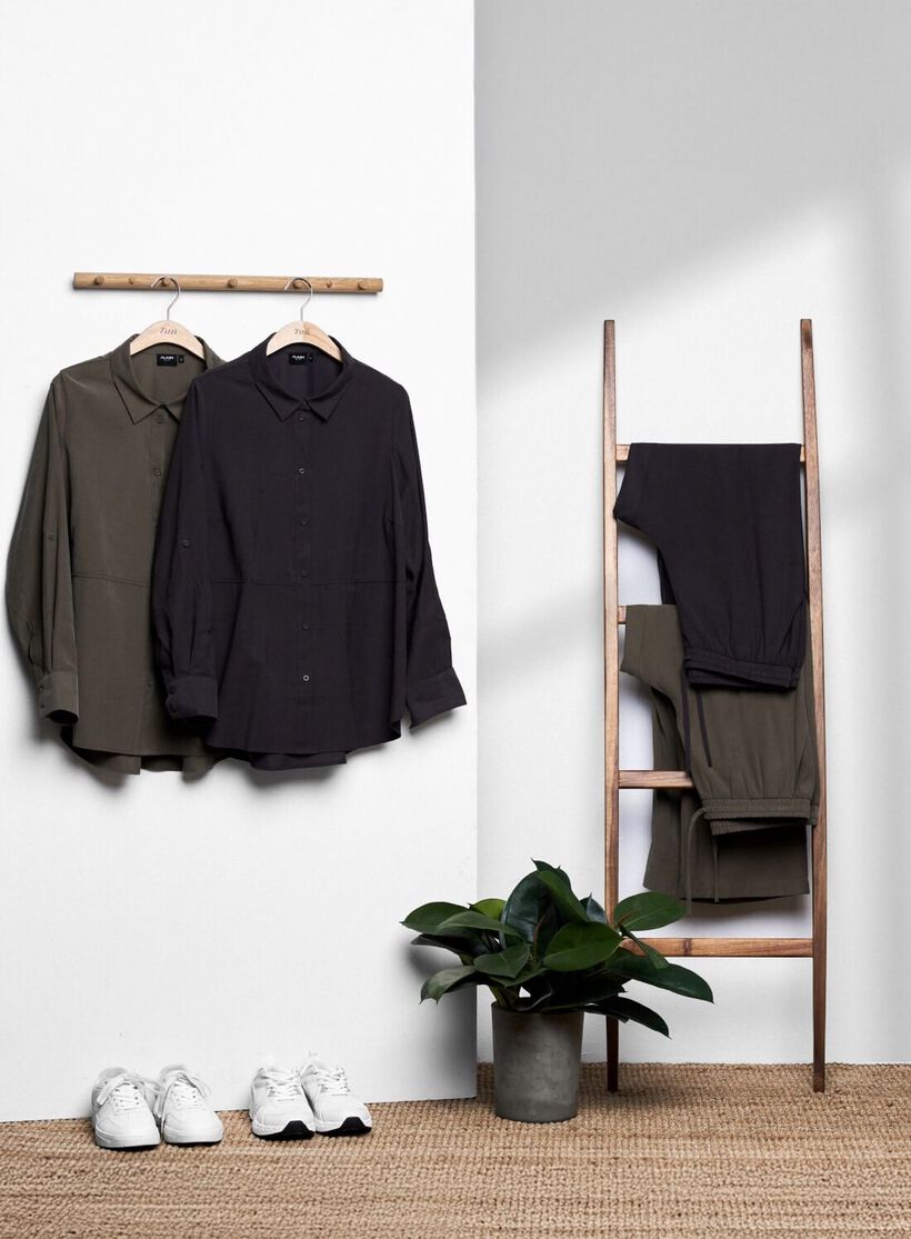 Chemise classique, fermeture boutonnée et manches longues pouvant être retroussées et fixées avec une patte et un bouton. La chemise a une coupe régulière avec un ourlet arrondi et est faite d'un tissu en viscose doux.