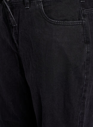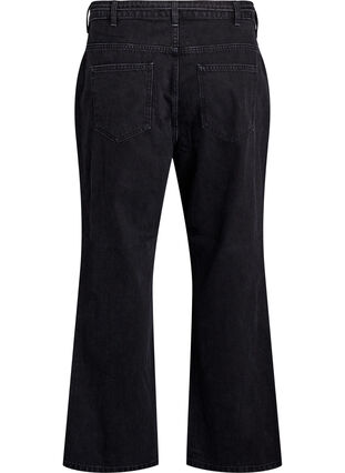 Jean 100 % coton à taille haute et à ceinture fine Ce jean a une coupe droite et se ferme par une fermeture éclair et par un bouton.