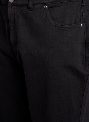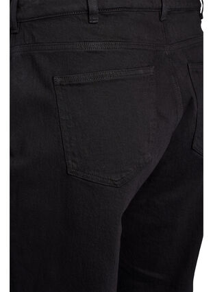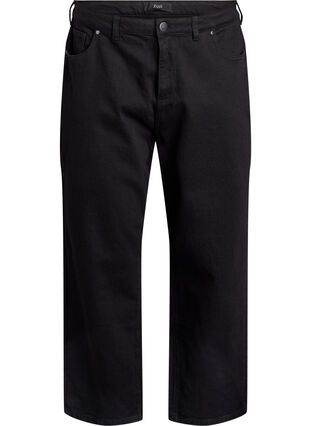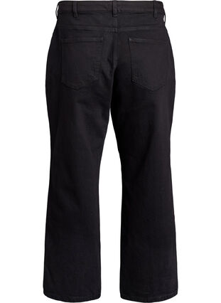 Jean tendance à coupe droite et décontractée, taille haute avec passants de ceinture. Modèle avec poches classiques, fermeture zippée et boutonnée à la taille, en coton.