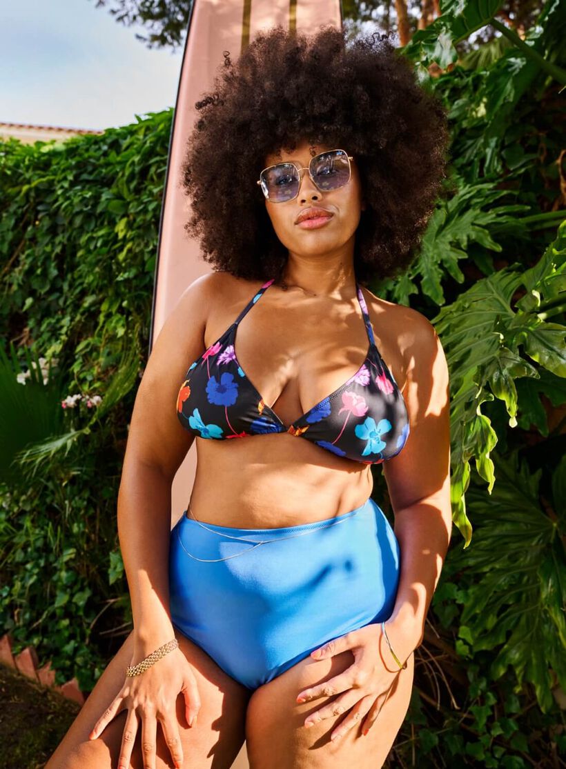 Haut de bikini triangle avec un bel imprimé all-over et des lacets fins qui se nouent dans le dos. Le haut de bikini est fait d'une matière résistante à séchage rapide, avec une doublure en mesh pour plus de maintien et de confort.