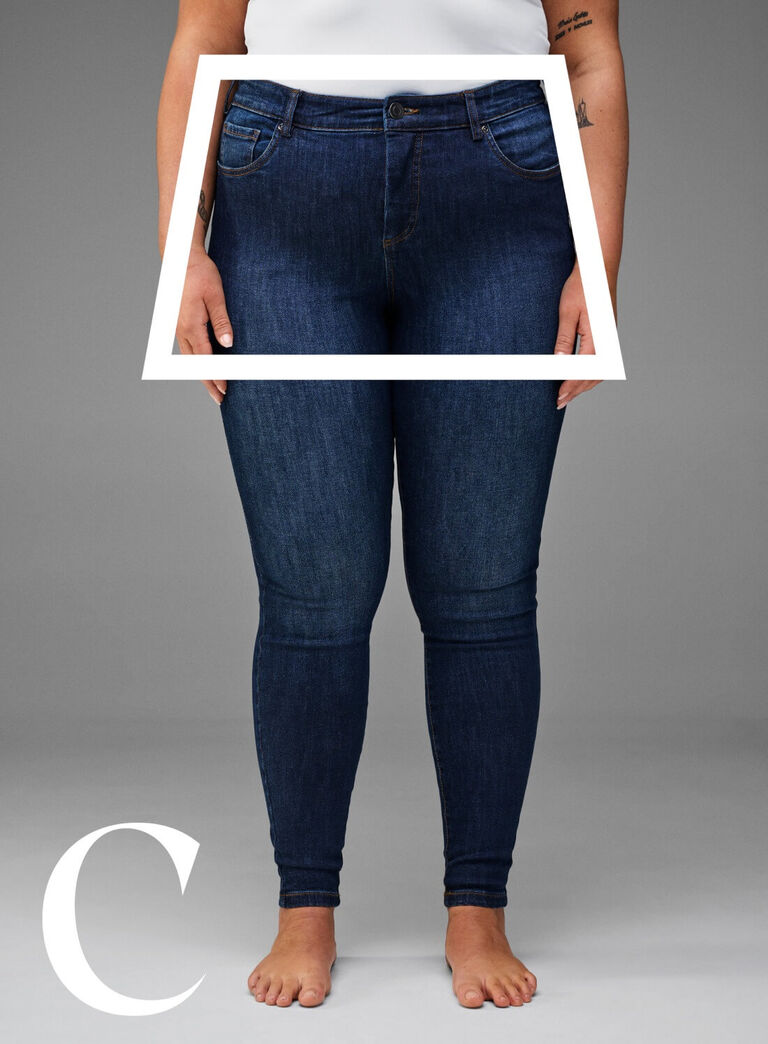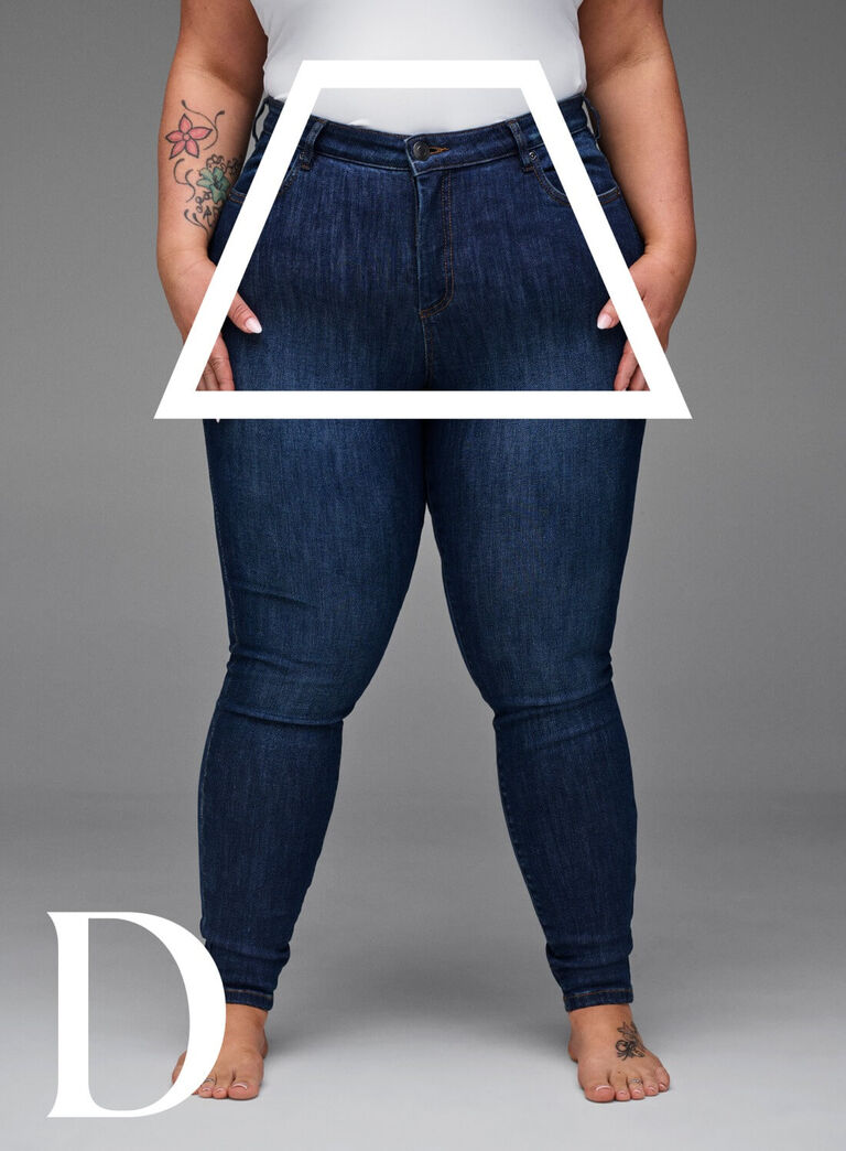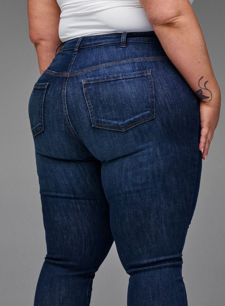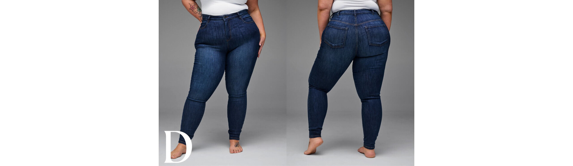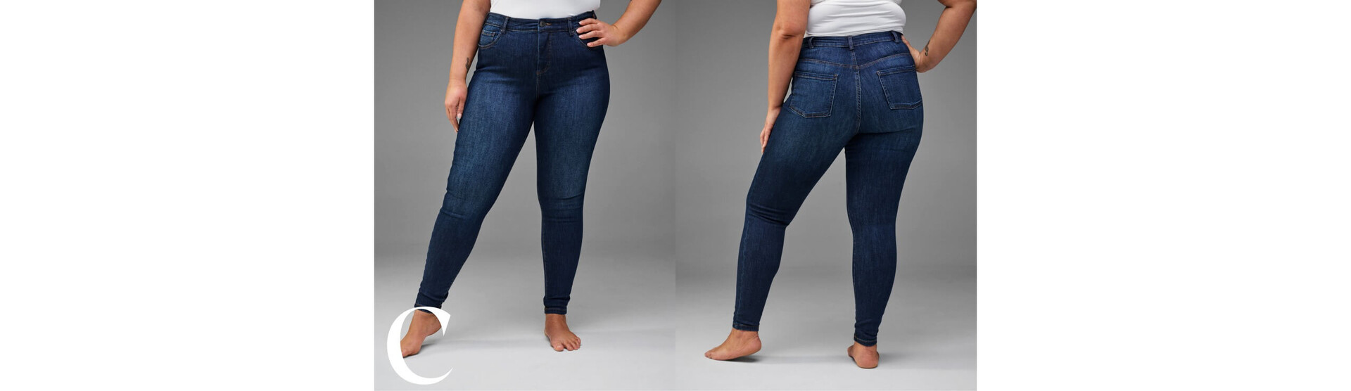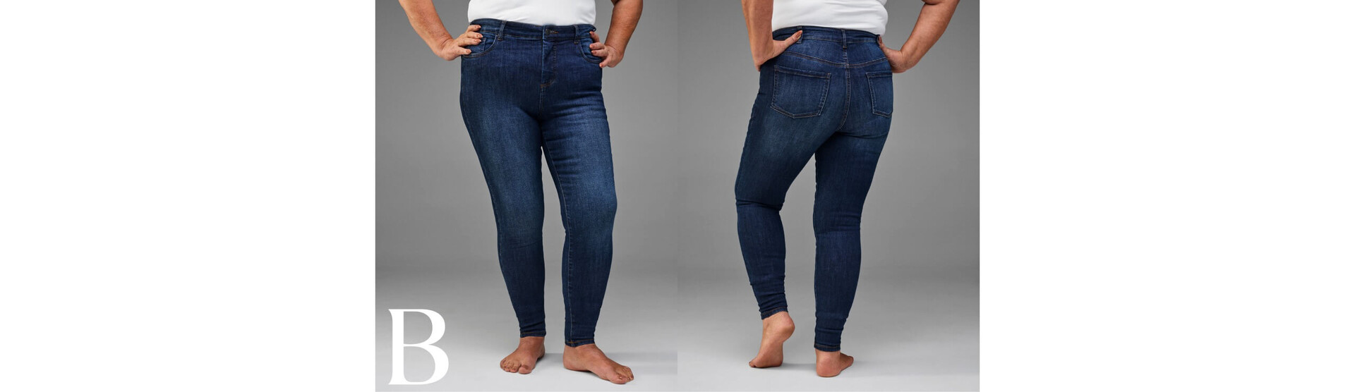 Idéalement, une paire de jeans super slim doit être ajustée près du corps, mais chaque corps est différent, et la même coupe de jeans ne conviendra pas à toutes les femmes. Nous avons développé ces jeans pour qu'ils s'adaptent à trois morphologies différentes, afin qu'un plus grand nombre de personnes puissent avoir accès à une paire de jeans slim confortable et bien ajustée.