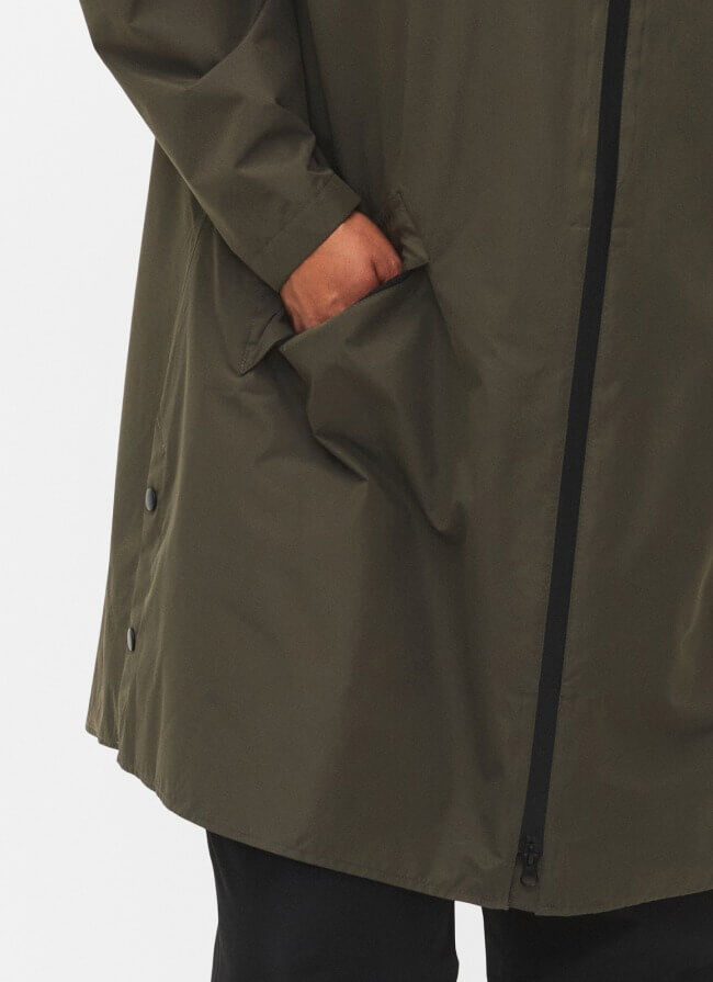 Quand tu es sous la pluie, ce n'est pas seulement toi, mais aussi tes affaires qui doivent rester au sec. Il est donc important que les fermetures éclair et les poches soient étanches. Opte pour des coutures scellées sur les fermetures éclair pour que la pluie ne s'infiltre pas. Assure-toi également d'avoir de bonnes poches qui correspondent à tes besoins. Tu pourrais avoir besoin de grandes poches pour tout, des gants aux écouteurs. Ou peut-être préfères-tu de petites poches intérieures pour ton téléphone et tes clés, ce qui te semblera plus sûr.