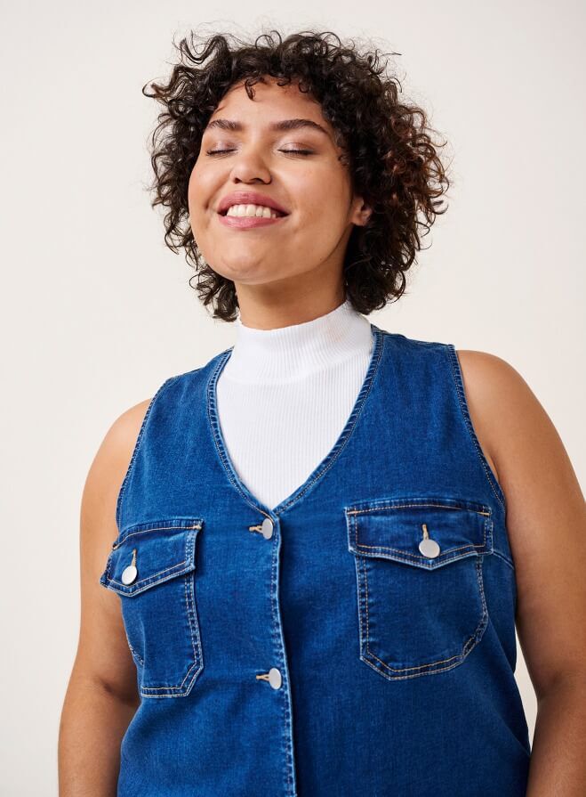 Ce haut est sans manches et fabriqué dans une jolie matière, mais nos conseils et astuces fonctionnent avec tous les cols roulés.