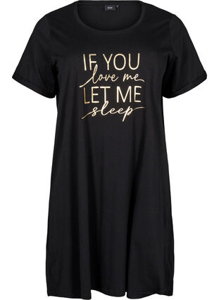 Chemise de nuit confortable 100 % coton biologique avec imprimé simple. La chemise de nuit a des manches courtes à revers, un col rond et une coupe trapèze ample et confortable.