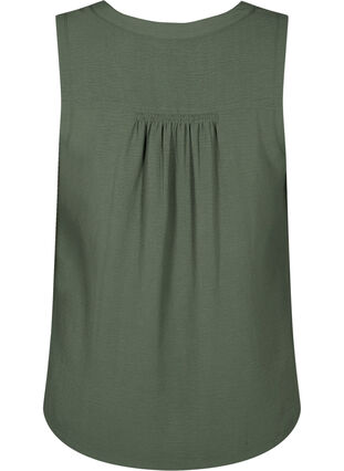 Haut sans manches fait d'une matière légère avec 51 % de polyester recyclé et de la texture. Le haut a une coupe régulière avec des fentes latérales, un col en V et des détails de smocks qui créent un bel effet drapé.