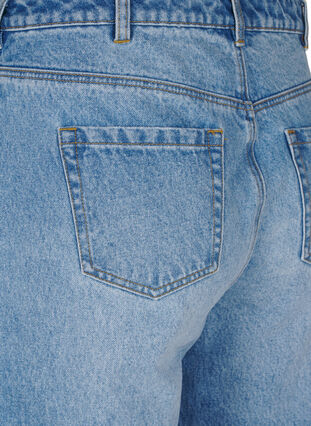 Jean tendance 100 % coton avec une coupe droite et des pattes larges qui donnent une silhouette droite en-dessous de la taille. Le jean a des ourlets larges, une taille haute, des boucles de ceinture et se ferment avec un bouton et une fermeture éclair.
