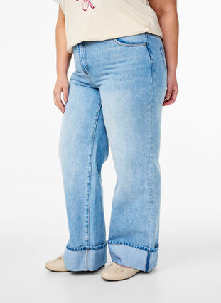 - Jean à larges revers à l'ourlet