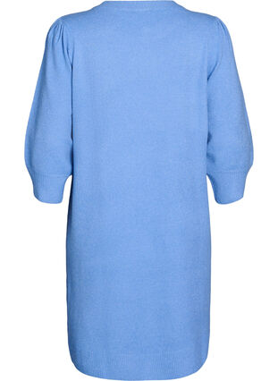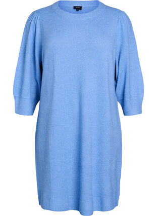 Robe tricotée courte dans une matière douce et extensible avec 94 % de polyester recyclé et une coupe droite. La robe a un col rond, des manches 3/4 avec des détails froncés aux épaules et se termine par des bords larges sur les manches et l'ourlet.